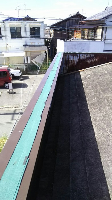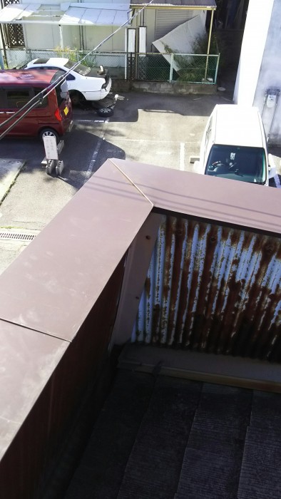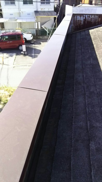 笠木と下地を撤去し新しく下地から取付けをおこないました。